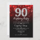 Convite de aniversário de 90. Elegante design branco preto vermelho com prata brilhante. Aniversário adulto. Apresenta diamantes e fontes de script. Convidado para homens ou mulheres no dia. Perfeito para uma festa de aniversário na moda. Envie-me uma mensagem se precisar de mais personalização.