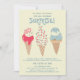 Novo para o Verão de 2024. Nosso "Sorvete, Gritar Que Todos Nós Gritares Sobrevivamos" 90 Convite De Aniversário! Seguidos de três cones retrorreflectores de sorvete de cor d'água com sorvete vermelho, branco e azul patriótico e aspergaminhos.