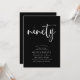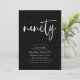 Este moderno, branco sobre design preto, apresenta a palavra "noventa" em uma caligrafia estilo script e uma tipografia moderna, elegantemente espaçada, compreendendo fontes clássicas de serifa. Os convites se invertem a um delicado padrão de triângulo repetitivo em cinzas pretas e cromáticas. Adequado para homens ou mulheres. Escolha entre convites Zazzle impressos com estilos de canto diferentes e estoque de papel maravilhoso, ou faça download instantâneo se você precisar dele agora, ou ambos para que você possa enviar papel e convites digitais conforme necessário.