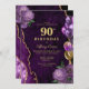 Convite de aniversário de 90 de Agato Floral de ouro roxo Elegante. O convite para 90 apresenta balões roxos e dourados, e rosas lilás roxos delicados, com espinhos dourados.