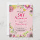 Surpresa 90 Floral Convite de Aniversário para Mulheres. Camada De Fundo De Cor De Água, Cor De Rosa. 16º 18º 80 21 30 40º 50º rua 100º 70. Qualquer Idade.
