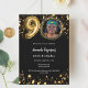 Um convite para fotos moderno e na moda para uma festa de aniversário 90. Um fundo preto clássico, decorado com estrelas ouros. Personalize e adicione os detalhes da sua festa.