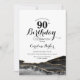 Convite de aniversário de 90 preto, branco e dourado. Elegante design moderno com aquarela agate marble geode background, faux glitter gold e typografia script font. Trendy convida o cartão perfeito para uma comemoração de dia das mulheres na moda. Impressos convites Zazzle ou modelo de impressão digital instantânea para download.
