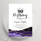 Convite de aniversário de 90 roxo, branco e dourado. Elegante design moderno com aquarela agate marble geode background, faux glitter gold e typografia script font. Trendy convida o cartão perfeito para uma comemoração de dia das mulheres na moda. Impressos convites Zazzle ou modelo de impressão digital instantânea para download.