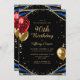 Convite de Aniversário do Elegante Dourado Agate 90 de Aniversário Convidado para o aniversário de 90 com brilho dourado, espirais de mármore azuis agata, balões de brilho vermelho e dourado e leituras elegantes de escrita de caligrafia. Fácil de personalizar para comemorar ter 90 anos de idade.