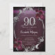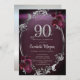 Convites 90 de Aniversário do Frame Burgundy de Prata Chic