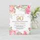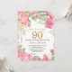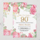 Convite de Aniversário para 90 de Surpresa Floral para Mulheres. Flor Botânica De Aquarela. Dourada Glitter. Flores Florais De Peões Rosa. Aniversário Adulto.