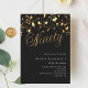 Um convite moderno e na moda para uma festa de aniversário 90 para ele e para ela. Decorado com estrelas ouros. O fundo preto e a palavra 90 escrita com letras douradas falsas grandes. Personalize e adicione um nome e detalhes da parte.