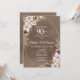 As sofisticadas flores brancas de queda são rodeadas por cinzas neutras, folhas castanhas e pretas. O texto branco é uma combinação chic de letras eretas e texto caligráfico. O fundo de aquarela esticada as enquadra perfeitamente.
