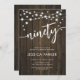 Convite de aniversário 90. Design russo com padrão de madeira marrom-escura. Cartão de convite clássico com luzes de fada e fonte de script. Perfeito para uma comemoração de na moda 90 dias. Personalize com seus próprios detalhes. Pode ser personalizado para qualquer idade! Impressos convites Zazzle ou modelo de impressão digital instantânea para download.