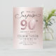 Moderno Shhh, é uma convite de aniversário surpresa que apresenta o roteiro na moda e o falso rosa de ouro brilhante número 90 e os detalhes de sua festa sobre fundo rosa ouro, simples e elegante, convite para adultos de grande etapa para surpresa de excelente para mulheres. a cor preta de fundo pode ser alterada para qualquer cor de sua escolha.