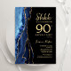 convite de aniversário marinho azul, preto e dourado agata o 90 surpresa. Elegante design moderno com cor azul-real de água agate marble geode fundo, fonte falsa de ouro brilhante e script de tipografia. Trendy convida o cartão perfeito para uma comemoração de dia das mulheres na moda. Impressos convites Zazzle ou modelo de impressão digital instantânea para download.