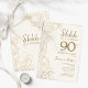Ivory Cream e Dourado Convite de aniversário para 90 de Surpresa Botânica. A design feminina moderna minimalista apresenta sotaques botânicos e letra de script de tipografia. Simples cartão de convite floral perfeito para uma festa surpresa na moda.
