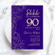 Convites 90 de Surpresa Dourada Roxa Aniversário