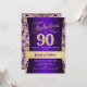 90 Convite de aniversário em roxo e ouro. Cartão de convite elegante com ouro brilhante falso e diamantes. Apresenta cor damasco e fonte de script. Fabuloso aos noventa! Design clássico perfeito para uma festa de na moda. Envie-me uma mensagem se precisar de uma idade personalizada.