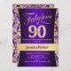 Convites 90 Festa de aniversário - Dourado Roxo