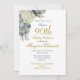 Um Convite De Aniversário Floral De 90. A idade pode ser alterada para qualquer idade, não apenas para 90 anos. Um bonito fundo de flores brancas e folhagem azul. As informações são facilmente alteradas para suas próprias informações personalizadas com a palavra surpresa que pode ser removida, a idade alterada e a data de nascimento removida, se você quiser. Mude a foto para a sua.