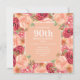 convite de aniversário de 90 para mulheres, desenhado com lindas flores rosa-pincel e vermelhas com brilho dourado, maravilhosamente arranjado em um quadro quadrado. Entre em contato conosco para obter ajuda sobre a personalização ou produtos correspondentes.