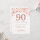 Convite de aniversário 90. Design elegante em ouro rosa e branco. Possui rosas cor-de-água pinceladas rosa, confetti e diamantes. Perfeito para uma comemoração de vidro.