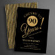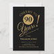 Cheers to 90 years! 90th birthday party invitation in black and faux glitter gold. Simple modern design, perfect for an elegant men's or women's bday celebration. Customize with your own details. Can be personalized into any age! Printed Zazzle invitations or instant download digital printable template.
