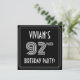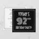 A frente deste design de convite para comemoração de na moda 92 segundos de aniversário apresenta um nome editável, um rico de arte deco parece inspirado número "92", a mensagem "FESTA DE ANIVERSÁRIO!" e uma fronteira multilinha. Por padrão, a parte frontal também apresenta um plano de fundo preto, mas pode ser personalizado para uma cor diferente, se desejado. A parte traseira apresenta detalhes personalizados sobre o evento, como data, hora, local/local e quaisquer outras informações que possam ser importantes. Convites luxuosos, elegantes e personalizados como estes podem ser usados para convidar convidados para uma reunião/festa de aniversário para comemorar o 92º aniversário de alguém. [~Z0000615]