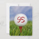 Feche uma bola branca de golfe sobre uma teta vermelha na grama do 95º convite de aniversário.