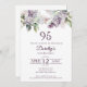 Lilases púrpuras de aquarela suave criam um convite bonito de aniversário de 95 anos. A tipografia adiciona uma víbora, retrô víbora. Todo o texto é editável para que você possa definir o tom certo. Você também pode mudar fontes e cores facilmente. Este convite de 95 anos está disponível em estoque de cartão tradicional e em uma versão para download. Faz parte da coleção Purple Primavera Lilac Flower. Ele permite que você escolha um tema e, em seguida, crie facilmente um conjunto único de convites, sinais de boas-vindas e decorações de festas. O planejamento de festas torna-se divertido e agradável.