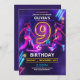 Convite para o 9º aniversário do Neon Soccer, Convite para o Aniversário, Convite para o Esporte da Festa de aniversário de futebol, Convite para o Futebol das Jogadoras de Raparigas