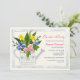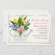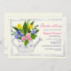 Um convite encantador com água decorativa pode ser preenchido com flores amarelas, azuis e rosa. Adequado para qualquer celebração feminina.O cartão é fácil de personalizar com seu texto, fonte, cor da fonte e escolha de seis tipos de papel.
