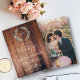 Monograma elegante de convite de casamento de foto botânica de cor d'água para primavera, verão, outono ou casamento no inverno. Design de aquarela verde do ramo de oliveira no cartão de madeira escura. Você pode adicionar facilmente sua própria foto (no verso) para personalizá-la e adicionar seu próprio texto. Se precisar de ajuda, entre em contato comigo em pixelshoot3@gmail.com.