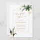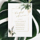 Este cartão de chá de panela de casamento apresenta cor d'água folhagem tropical verde, folhas de monstera, folhas de palmeiras, folhas de bananeiras e centavos de ouro com padrão tropical no verso. É perfeito para um casamento de praia ou destino. >>> Veja a coleção inteira >> https://www.zazzle.com/collections/tropical_foliage_gold_collection-119316977990783186