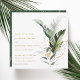 Este convite quadrado de casamento apresenta folhagem tropical verde-aquosa com sotaques falsos de folha de ouro e um padrão tropical verde-ouro no verso. É perfeito para tropicais, destinos, verão, casamentos de praia, ou outros eventos semelhantes.