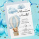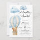 Este encantador convite para o chá do bebê apresenta uma design de aquarela com cores suaves e uma vibração fofinha, ideal para celebrar a chegada de um pequeno. A peça central do convite é um ursinho de pelúcia recheado num balão de ar, simbolizando a aventura que se espera. Projetado por Designs SweetFind