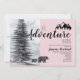 A aventura começa de novo a floresta russa ursa chá de fraldas borrifada por correio em rosa pastel mole, com uma majestosa árvore de pinheiro da floresta e silhueta da montanha. Personalize o seu chá de fraldas. Consulte a coleção de cheios de itens para este design em: https://www.zazzle.com/collections/let_the_adventure_begin_pink_rustic_woodland_bear-119031556317560521