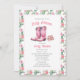 Tema do chá de fraldas Floral com ilustração das botas cor-de-rosa com botas para bebês. Borda floral rosa rosa rosa rosa rosa.