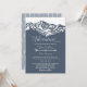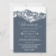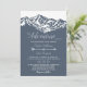 A aventura inicia o convite para casamento de montanha rustica em azul e branco poeirentos, padrão de seta ao lado inverso.