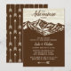 A aventura começa o convite rústico do chá de fraldas da montanha no teste padrão da seta de Brown no verso.