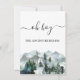 A aventura inicia o convite ao Chá de fraldas de natureza selvagem Esta aventura começa o convite ao chá de fraldas apresenta uma cena de natureza aquosa atmosférica com pinheiros e montanhas. Excelente para o chá de fraldas de inverno de um menino.