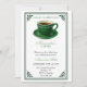 This design features a old money vintage baby shower theme "A Baby Is Brewing" with a green coffee cup illustration and elegant borders giving it a luxury coffee shop vibe. This product can be easily personalized. If you need help with the customization of the product or need matching products kindly please contact me via Zazzle.
