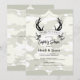 Estilo rústico campestre de chifres de veado "A Caça Terminou" humor divertido design gráfico em um fundo camuflado com um toque simples e elegante para o seu chá de panela/ chá de casamento do casal ou o grande dia que se aproxima! Por favor, personalize-o com o seu próprio texto de acordo com a ocasião ou clique no botão "Personalizar" para ir para a ferramenta de design onde você pode adicionar texto, alterar a fonte, tamanho do texto, cor do texto, posicionamento do texto e muito mais.