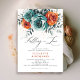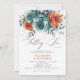 Este Chá de panela ou Casamento Floral Botânico Queimado de Teal Vermelho Laranja Queimado com Teal Queimado Captura a essência do outono com uma fronteira floral botânica com rosas de aquarela e folhagem de casamento em tons ricos e quentes de terra e terracota queimada laranja, assim como o título "Apaixonando" na caligrafia moderna. O design de convite é complementado por uma textura de aquarela pálida, evocando o ar nítido e os tons de outono do ouro. Ideal para uma noiva planejando um chá de panela rústico, jardim, ou uma celebração íntima do quintal, este convite reflete perfeitamente a atmosfera acolhedora e romântica da estação do outono, misturando arte romântica com elegante simplicidade para qualquer lugar.