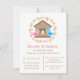 Um convite para chás de fraldas giro que tem um pássaro de madeira cercado por um pastel colorido deixa a borda da coroa. Os pássaros-pais, cor-de-rosa e azul, estão animados por seu ovo bebê e esperando que ele ecloda no ninho. design de chá de fraldas neutro em relação ao gênero que mantém os convidados a adivinhar o gênero. A página reversa é um plano de fundo de textura lenhosa. Um convite elegante, moderno, contemporâneo e bonito para chás de fraldas! Personalize facilmente com os detalhes da festa.