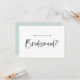 Peça aos amigos e à família para fazerem parte da vossa festa de casamento com esta carta feminina e moderna "Você será a minha dama de honra?". Apresenta uma alface escura do carvão aquoso com alface e uma casa de menta colorida para trás. Personalizar pelo nome e mensagem do destinatário.