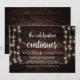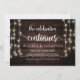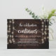 A celebração continua, Anúncio de Casamento Fuga / cartão de convite, em design de Luzes de Corda, Fazenda Rústica de Madeira. Isto é perfeito para a sua recepção de casamento e festa de celebração pós-casamento. Adicione seus detalhes na fonte / letra correspondente.