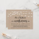 Belas Luzes de Corda de Fazenda Rústica Moderna, fonte Script Preta em Fundo de Papel Kraft, Anúncio de Casamento Intimo, cartão de convite (A celebração continua). Isto é perfeito para o seu casamento e festa de celebração pós-casamento. Adicione seus detalhes na fonte / letra correspondente.