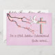 Convites de 25 da freira católica, margaridas. "É uma Celebração de Jubileu 25, Você é Convidado".Fundo rosa com galho de cereja desenhado pelo artista, pomba branca com ramo de oliveira e estilo 3D combinando cruz. O retorno do convite é personalizável e deve ser concluído pelo comprador.