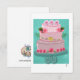 Grande e ornamentado, esta peça apresenta um bolo de três andares imponente colocado contra um rico fundo azul-teal. O contraste entre o fundo profundo e as rosas cor-de-rosa exuberantes e realistas cria uma profundidade visual impressionante.