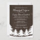 Se você está tendo seu evento fora, a seguir considere abraçar este tema perfeito da floresta! Este característica de cerimonia comemorativa bonita uma floresta e uma paisagem no branco sobre um fundo de madeira da grão do falso no marrom escuro. Você pode personalizar os campos do texto da amostra ao seu gosto. Outro que combina convida está igualmente disponível.