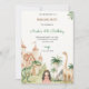 A children's party invitation with a princess, a castle, and dinosaurs. The text invites guests to a birthday party. Fun and whimsical theme.