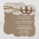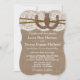 A coleção rústica de ferradura é um design impressionante que apresenta um adorável fundo de efeito de burvolta rústico com um trecho romântico de efeito de renda branca vintage acabado com duas ferraduras e fio entrelaçados com sorte. Esses convites podem ser personalizados para sua ocasião especial e farão o anúncio perfeito para qualquer casamento rústico, chá de panela, festa de noivado, festa de aniversário e muito, muito mais. *Por favor, note que Zazzle só vende convites impressos para que estes convites não tenham qualquer material real de burvolta, rendas, ferraduras ou fio.